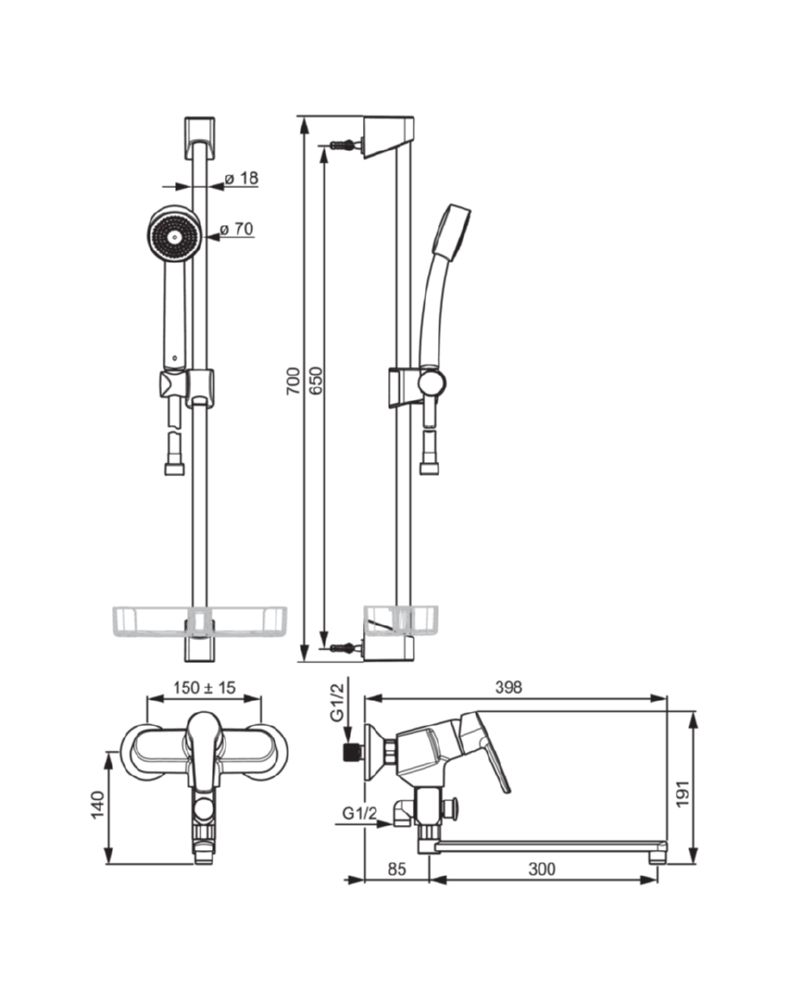 Смеситель для ванны и душа с поворотным изливом (300 мм) и душевым комплектом Oras Apollo. В комплекте с эксцентриками и отражателями. Встроенная опция ограничения расхода и температуры воды.