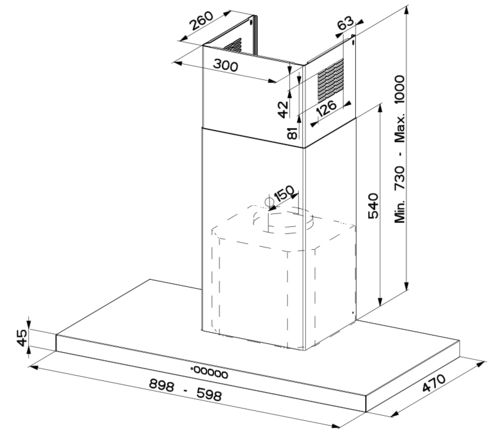 - Вытяжки встраиваемые и подвесные, шириной не более 60 см
