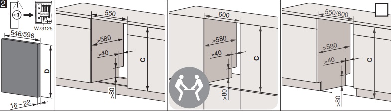 - Габариты ниши для встраивания ВхШхГ, мм: 851-967х600х580