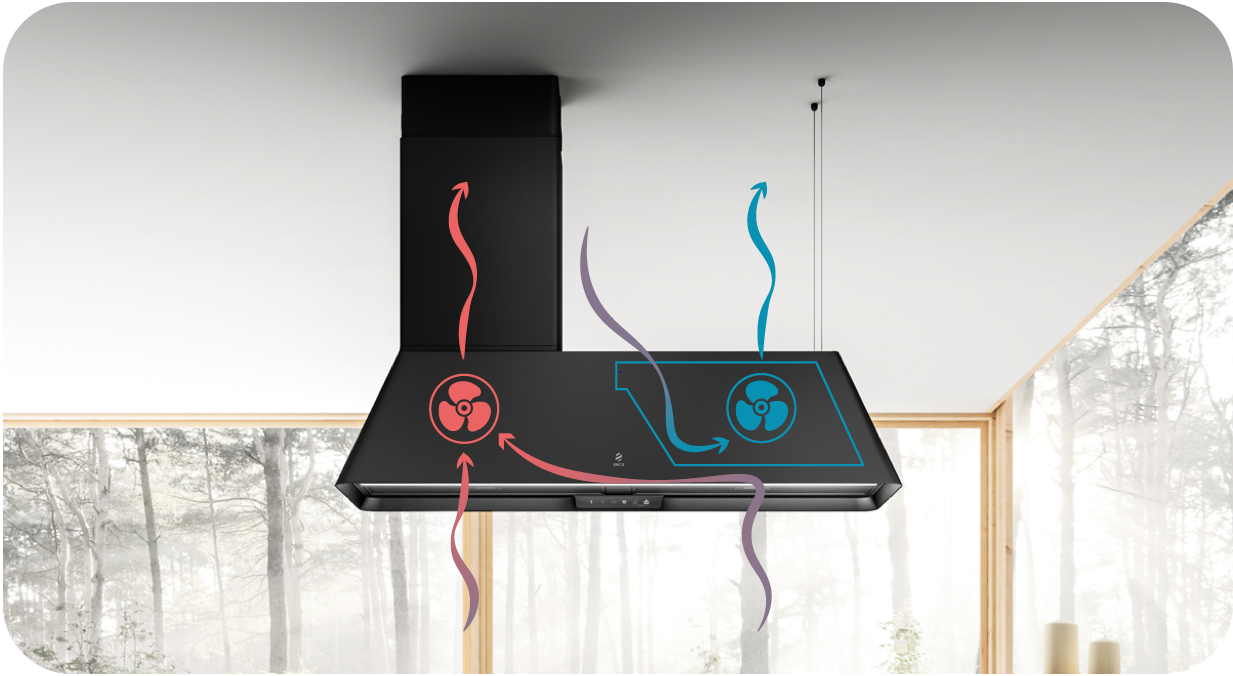 Вытяжка и очиститель воздуха в одном продукте, который заботится о чистоте воздуха в вашем доме на протяжении всего дня.