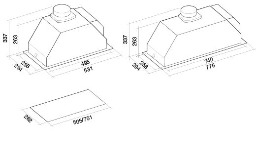 - Вытяжки встраиваемые и подвесные, шириной не более 60 см