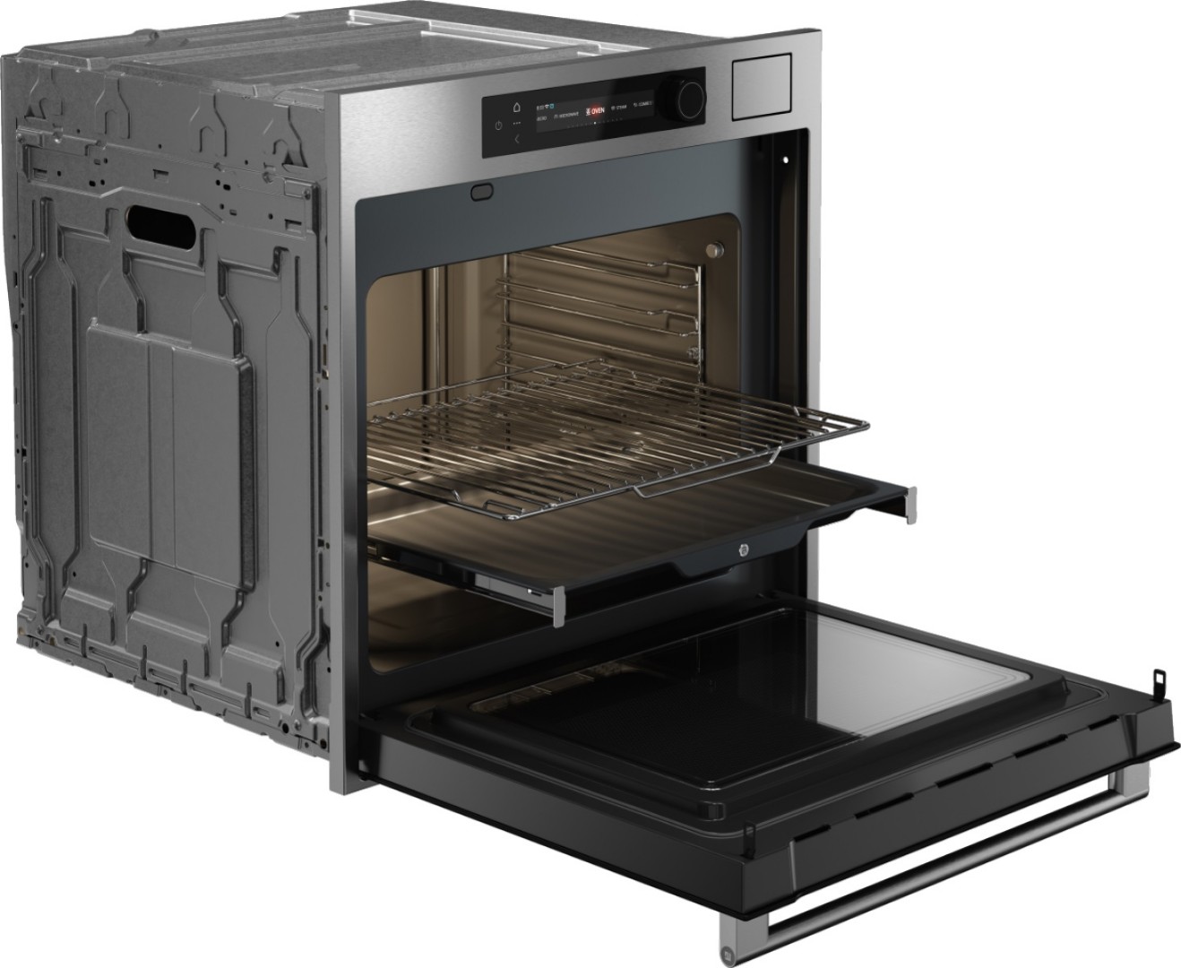 Конструкция дверцы с применением трех стекол позволяет снизить температуру фронтальной поверхности до минимума. Все это снижает потребление электроэнергии и делает приготовление полностью безопасным.
