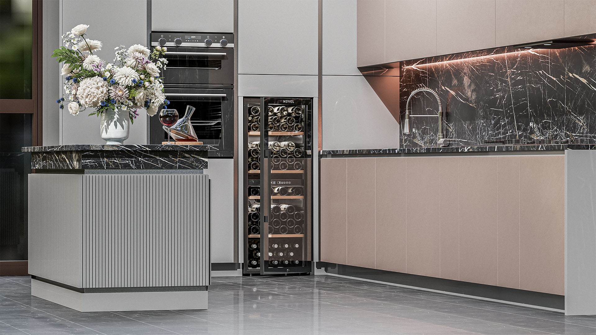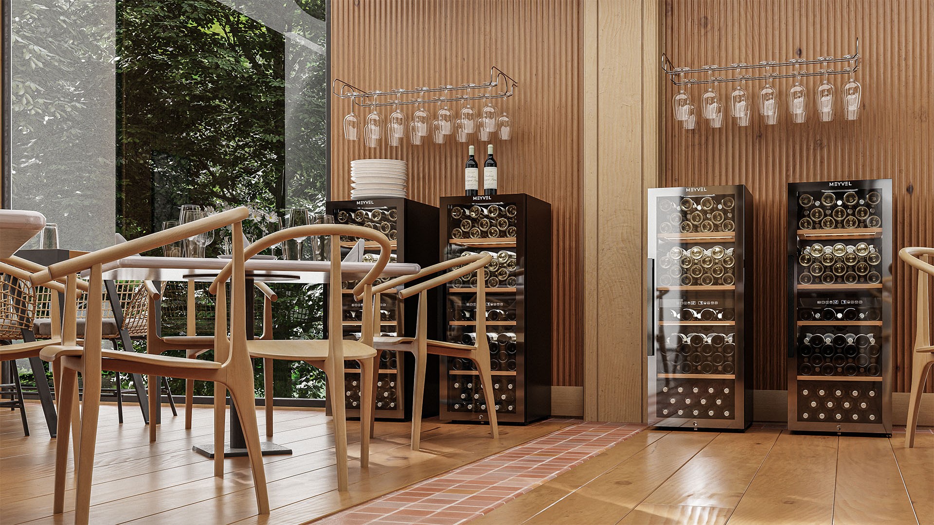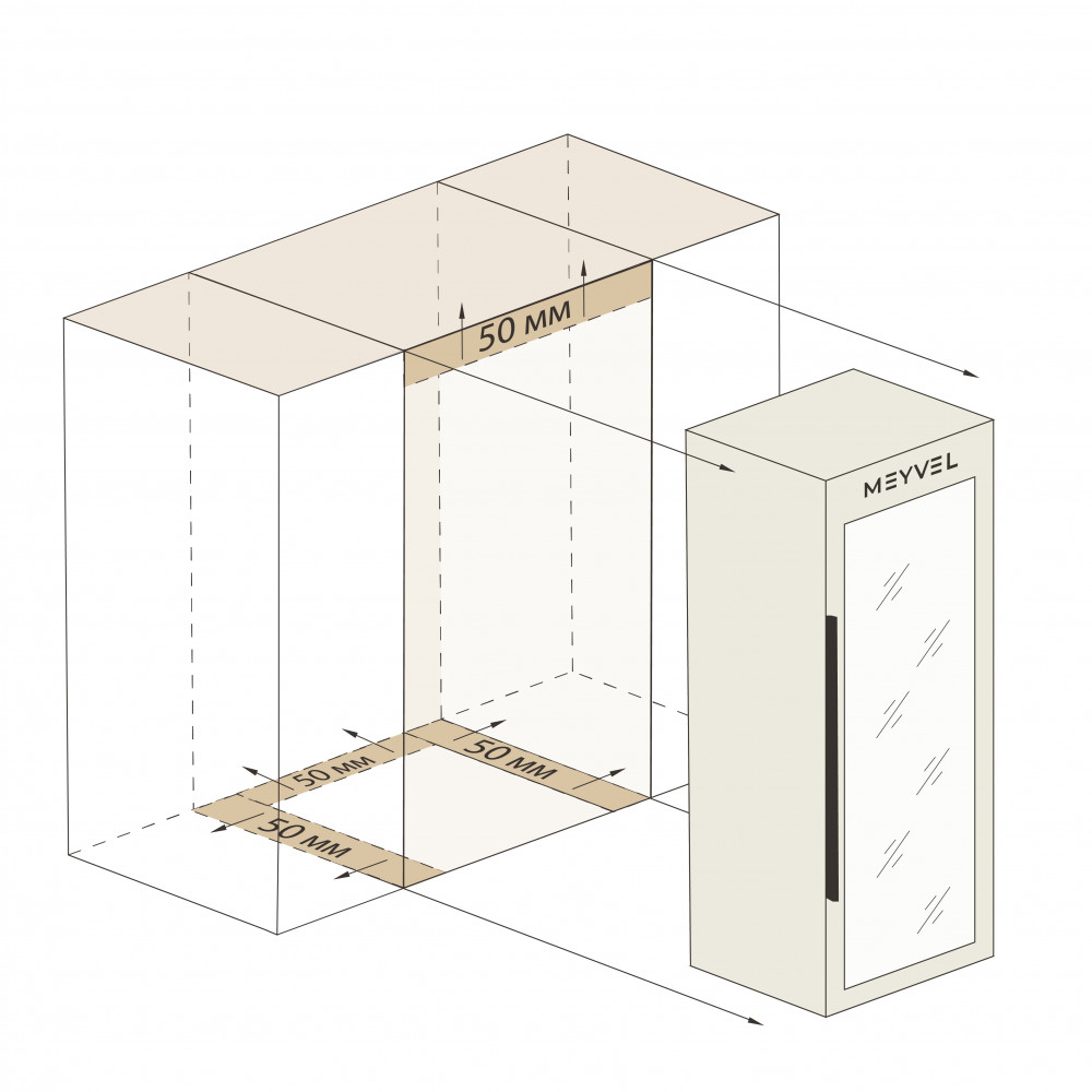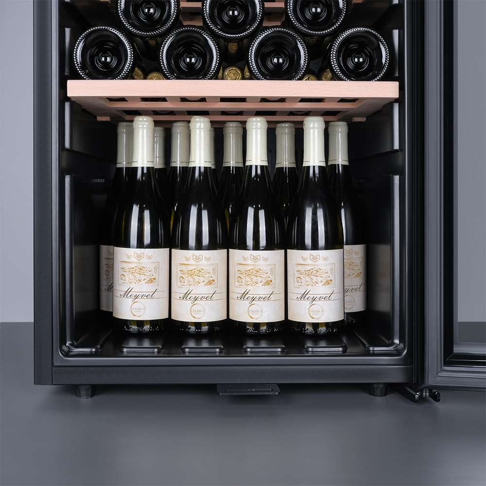 Meyvel MV98-KBF2 — отдельностоящее устройство, поэтому можно разместить его в любом удобном месте ресторана, отеля, бара или домашней винной комнаты без встраивания в мебель. Это удобно не только для создания стиля и атмосферы в интерьере, но и для предоставления легкого доступа к винам.