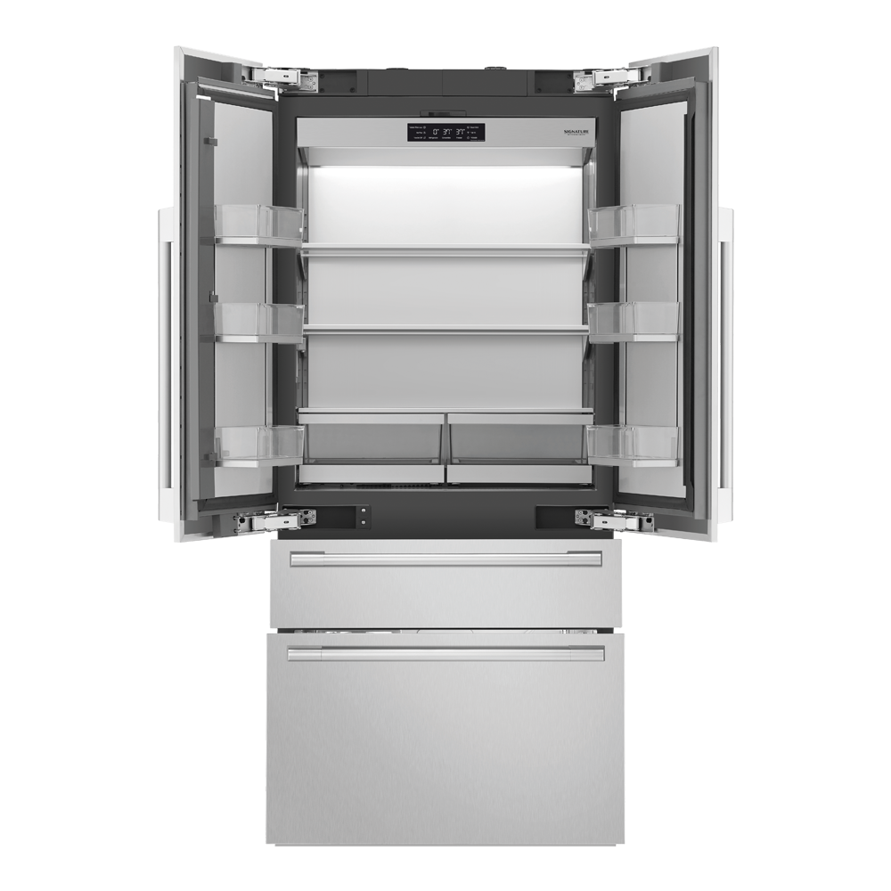 Модель French Door оснащена двумя линейными инверторными компрессорами, которые обеспечивают производительность, надежность и бесшумность работы. Управление каждым отделением (холодильник, морозильник, конвертируемый ящик) осуществляется электронным способом с помощью специального испарителя. Он обеспечивает максимальную точность управления температурой.